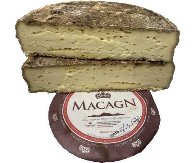 - Macagn del Caseificio Facciotti, formaggio a pasta molle, prodotto con latte crudo, dal sapore dolce e burroso, abbinato al Barbera d’Alba “Giaconi” di Pisoglio, vino rosso, corposo.