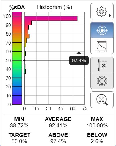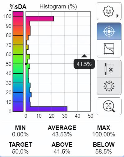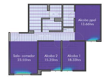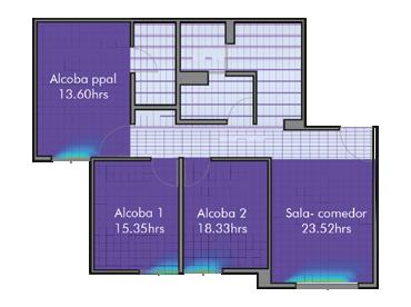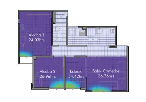 Según el Dr. Andres Marsh (2019) en su aplicación Daylight box, ejecutada desde un navegador web, nos presenta el análisis dinámico de la luz natural dentro de un espacio teniendo en cuenta, el tamaño de la habitación, las ventanas, los dispositivos de protección solar y la altura del plano de trabajo, estos datos que se pueden manipular de forma interactiva con la actualización de la distribución de la luz en el tiempo real, esta herramienta fue útil para el estudio del comportamiento lumínico en los espacios de cada uno de los estudios de caso, conociendo los porcentajes de reflectancia de las superficies y transmitancia de las ventanas.