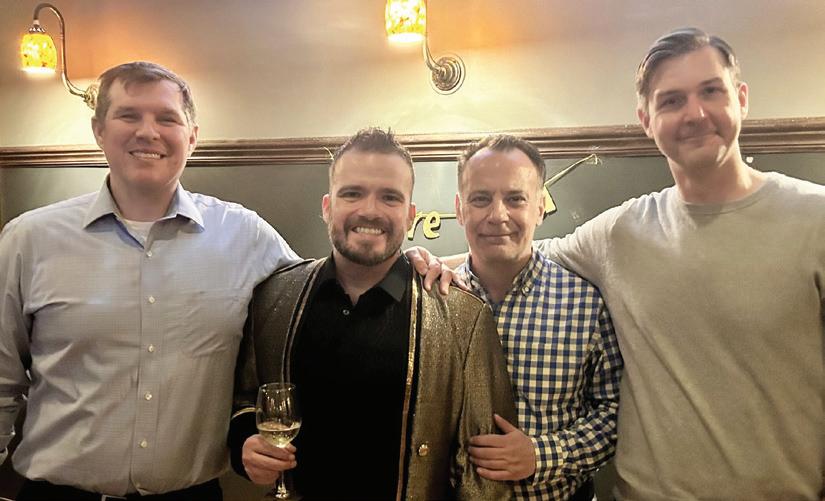 Michael (Grant) Hogan ’07 had his 40th birthday bash in Covington, KY, on March 8. There were more than 80 people in attendance, with a bluegrass band. L-R: Evan Piekara ’07, Grant Hogan ’07, Mario Laurenzi ’90 and Christopher Bothur ’07