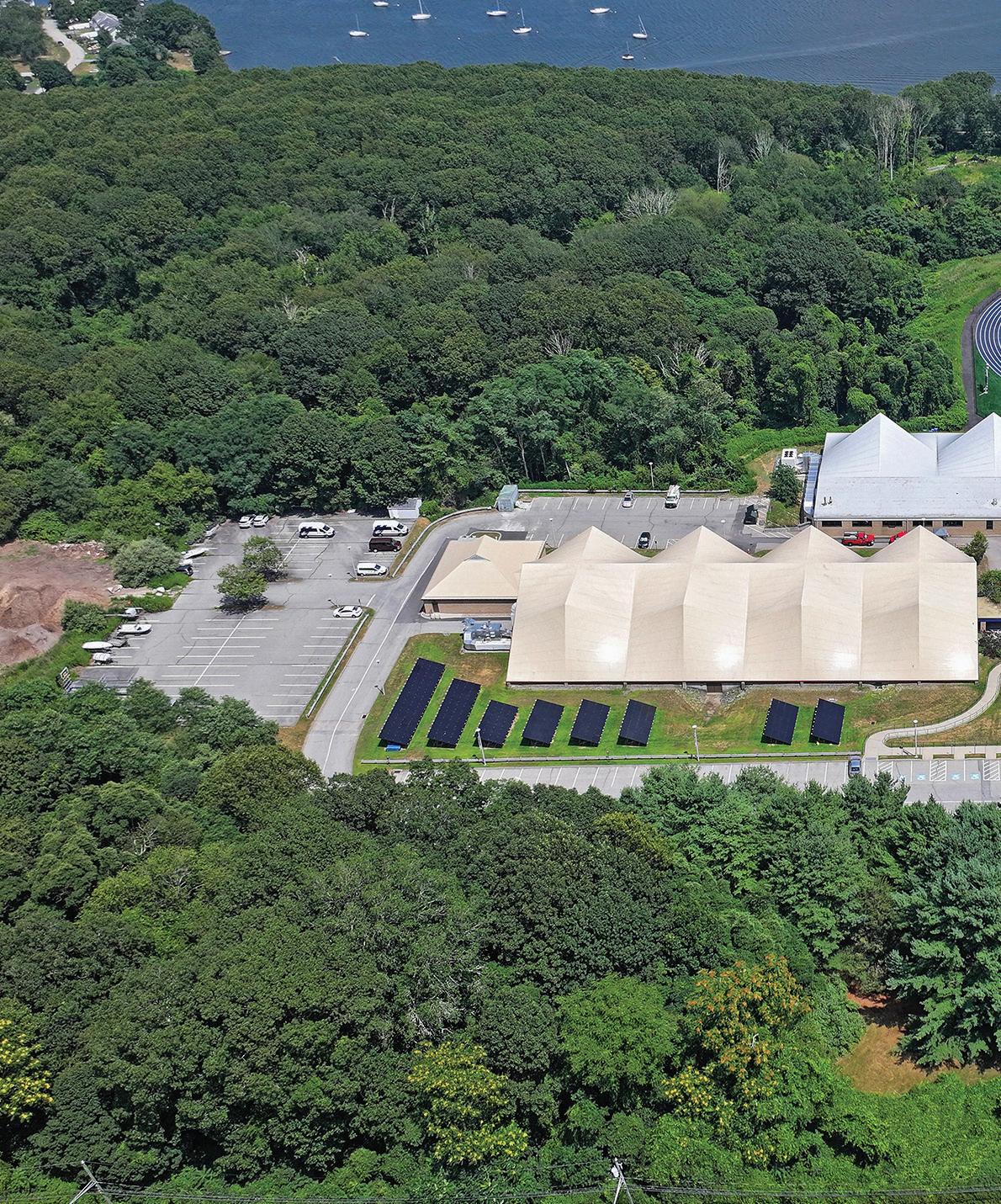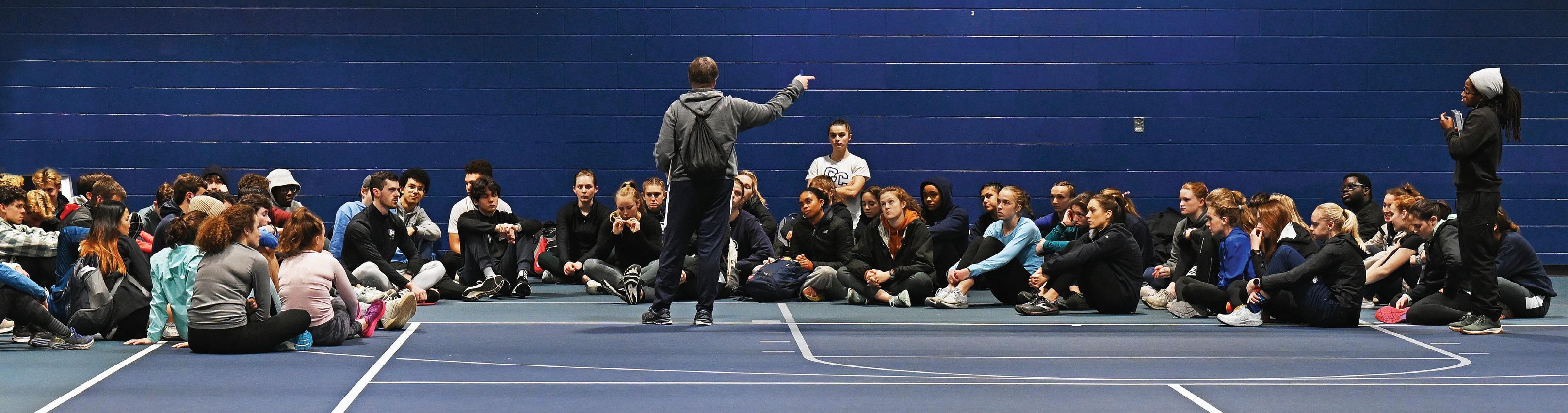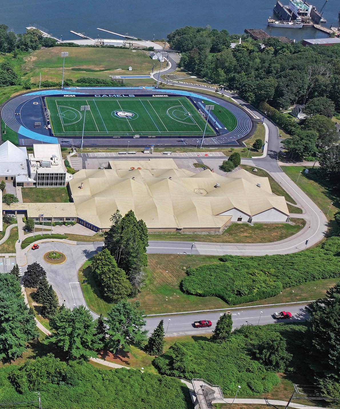 On this page: An aerial view of the Athletic Center. Recent facility upgrades include the construction of Archibald Way and the Kohn Waterfront; a new Silfen Field and Track; a new throwing terrace; a new varsity weight room, bleachers, court surfaces and entrance in Luce Field House; new locker rooms, coaches’ offices, sports medicine room and HVAC system in Dayton Arena; and upgrades, including a new filtration system, in Lott Natatorium. For more on Conn’s investment in athletics, see story on page 28. Photo by Sean D. Elliot