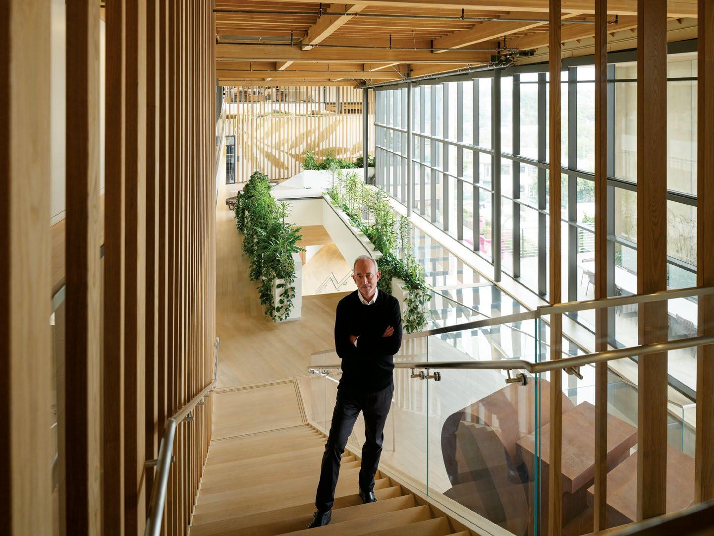 EMI includes both research laboratories and patient clinics for cancer treatment and preventive medicine — and everything is in one building, which is atypical. “The idea of putting them together in one was powerful,” says Agus, sitting in his office at the institute, looking trim and sharply dressed in a white collared shirt and a black sweater, a uniform he has worn since his former patient Steve Jobs suggested it. Both the research and patient