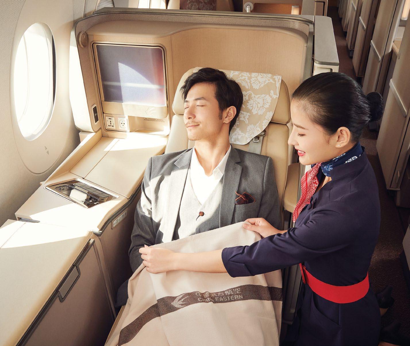 Experience a redefined premium travel experience with China Eastern Airlines. Business Class customers enjoy comfortable flat-bed leather seats, direct aisle access, personalized service, gourmet meals, and over 300 on-demand personal entertainment options. Through SkyTeam Alliance, we connect you to 1,050 destinations across 166 countries and regions. Explore more at ceair.com