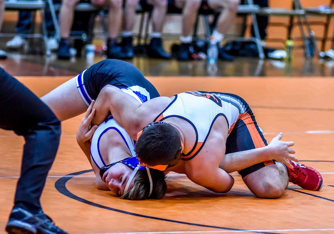 Rising Sun got pinfall victories from Tyler Garvin at 113 pounds, Connor Dube at 145 pounds, Mason Testerman at 185 pounds and Elijah Far at 120 pounds, and Xzavier Brown earned a 13-1 majority decision at 120 pounds for the Tigers’ other victory.