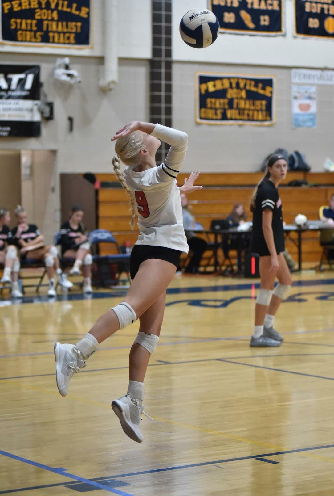 Rylee Lenz is a dominating presence on the volleyball court. In this weeks match with Perryville, Rylee led the team’s offense with 15 kills, 13 digs, 2 aces and a block.