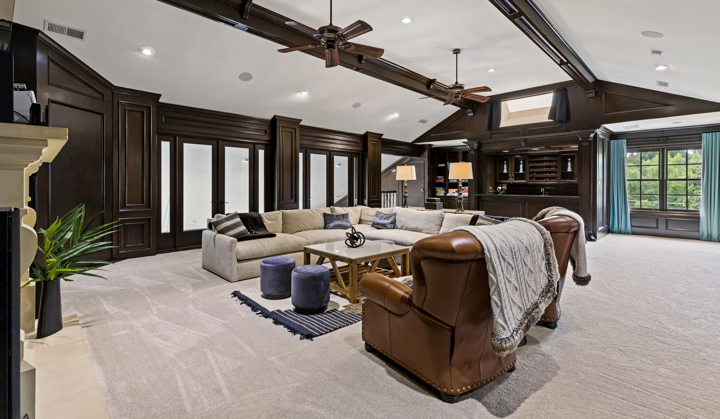 High ceilings are a common feature in luxury homes that might give a feeling of a space that’s too cavernous for a convivial atmosphere. Painting ceilings a dark color brackets the space, making it cozier and more inviting. Painting an entertainment center or game room a darker color can create focus, perfect for spotlighting a large screen or pool table.