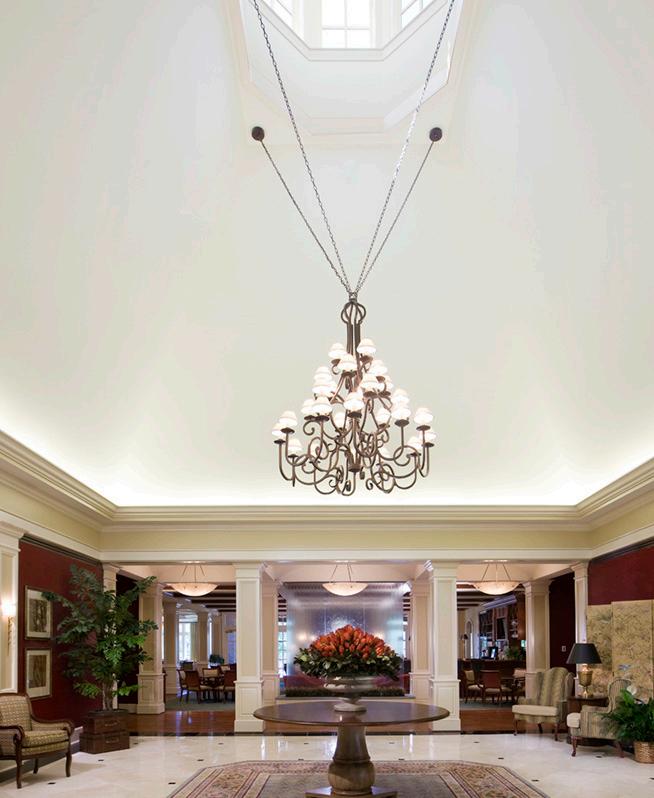 The entrance is grand and elegant, with a 30-foot atrium and marble floors. It, at once, awes and welcomes as it escorts you quickly to dining, fitness and meeting spaces.