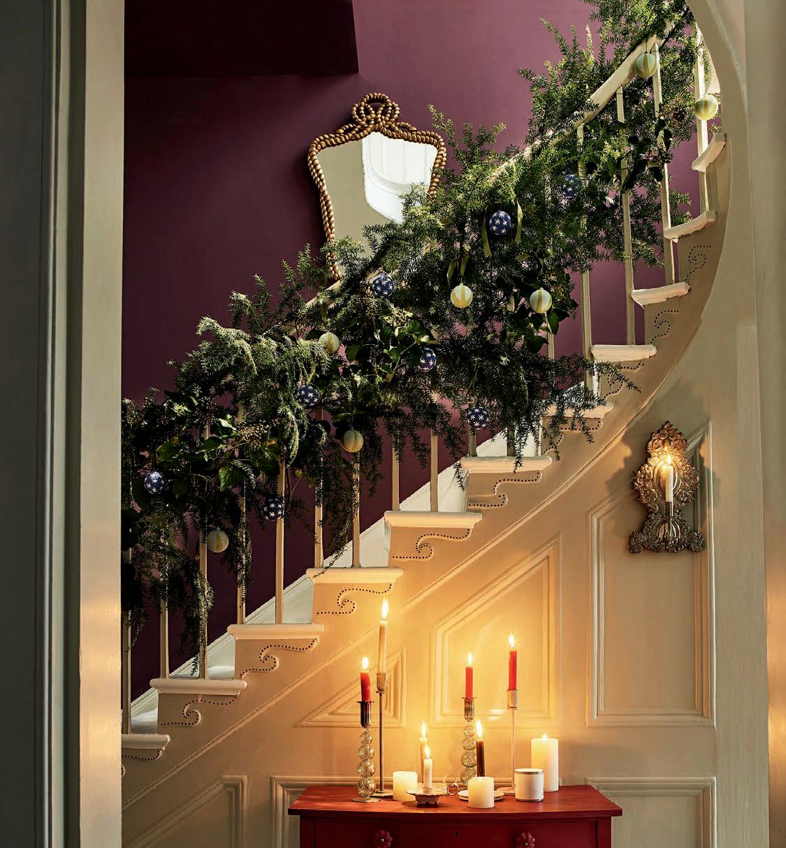 of pine, yew, ivy and even eucalyptus and olive are ideal for decorating the house at Christmas. As well as using them to adorn mantelpieces and staircases, why not suspend them from the ceiling above a dining table to create a dash of modern rustic festive drama?