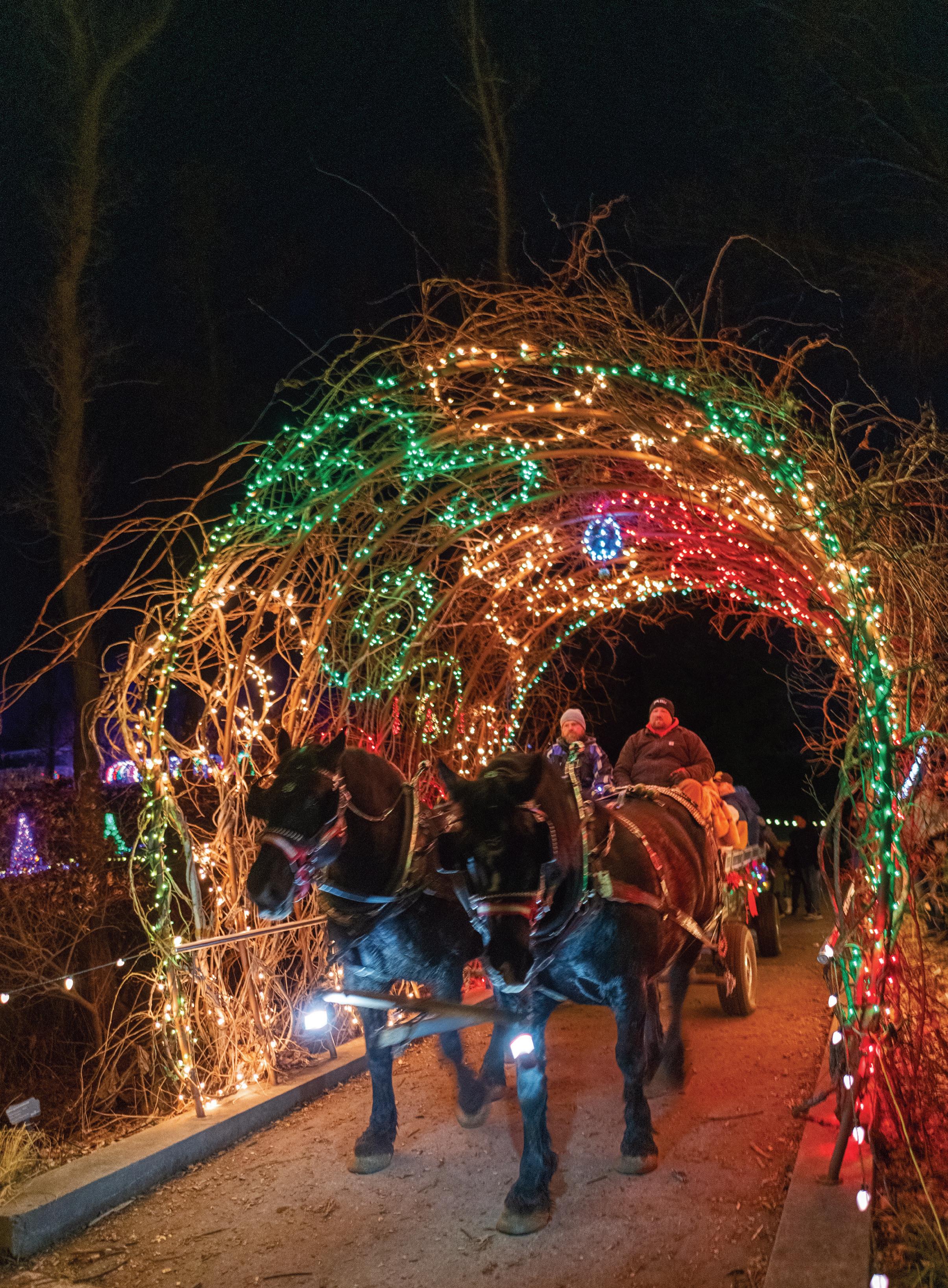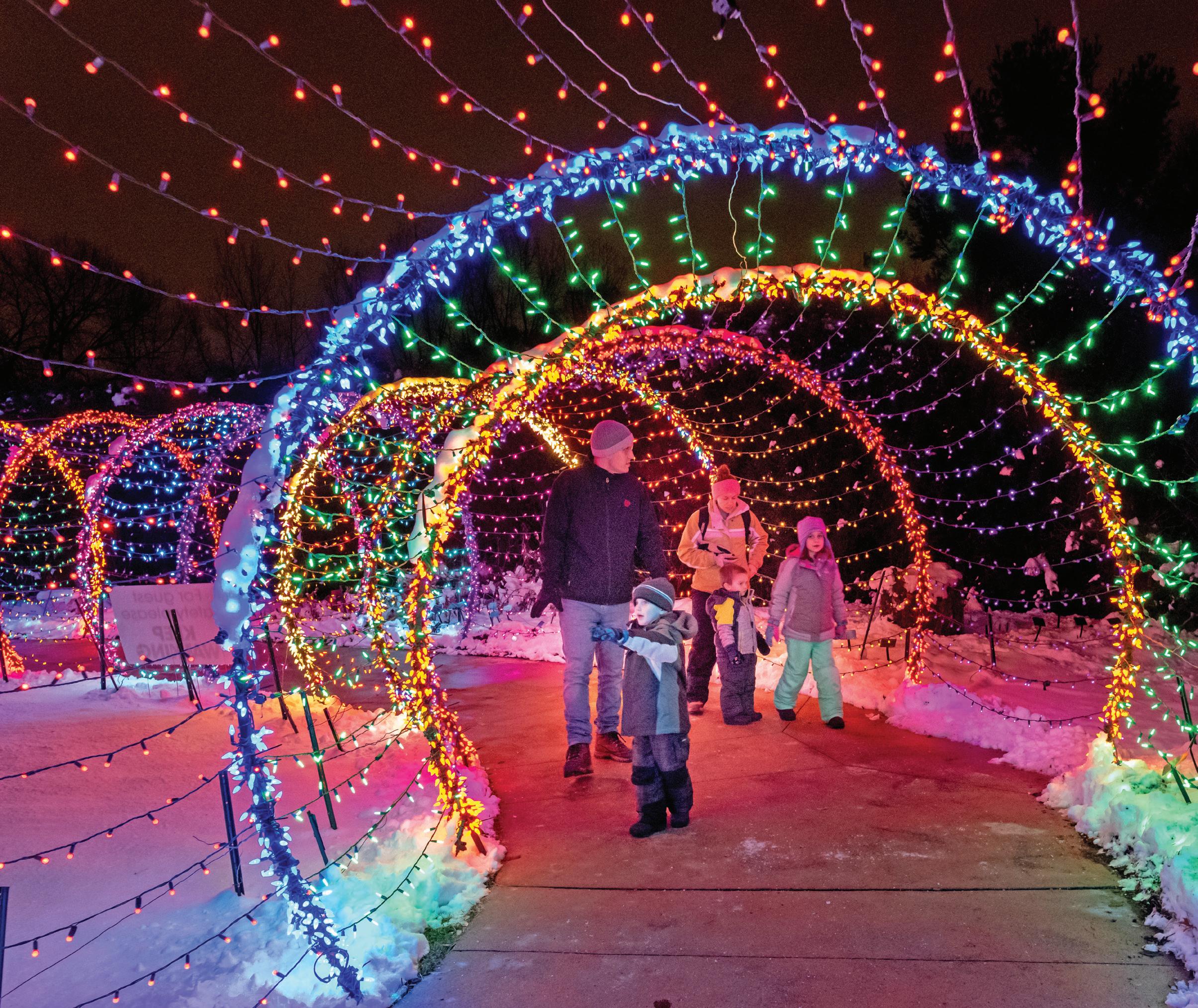 “The lights are a long-standing family tradition for many. You’ll see grandparents with their grandchildren who come year after year,” says Rachel Mueller, the garden’s PR and content coordinator. “What really sets the displays apart is the focus on nature. There are displays featuring flowers and animals, which fits well with our mission of being a botanical garden.”