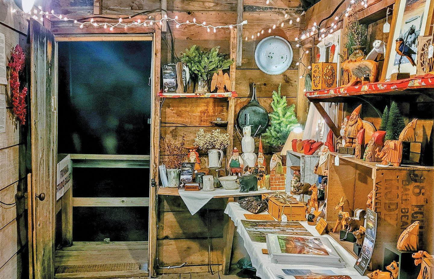 Local artists and craftspeople sell handmade art, crafts, clothing, home goods and Christmas décor, with most coming from northern Door County. A food court offering German and Nordic offerings, including sausage, pastries, Gluhwein and hot chocolate, is in the Koessl Barn. Live music and a gift-wrapping service is also located in the barn.