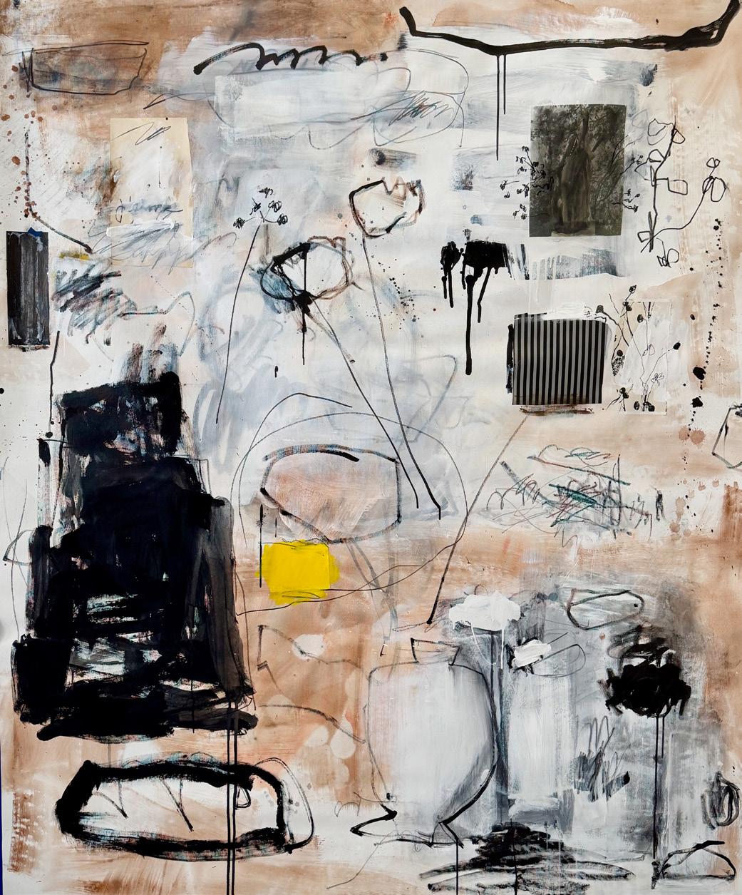 “Whenever I initiate a drawing, collage, or painting, a dialogue begins. It becomes a conversation, a back-and-forth of visual bantering. I play with materials and surfaces, and in the process new directions and images emerge. This allows me to work with disparate ideas that evolve from personal experiences and the world around me. Through improvisation and experimentation, I grab both conceptually and physically from my surroundings. Within the chaos, I search for a hidden order using figurative abstraction, gestural mark-making, and formal elements of design. In my studio practice, I attack, pull back, destroy, and rework surfaces. It is a dance where the choreography is constantly changing until the piece tells me to stop. I am rewarded with the joy of discovery.”