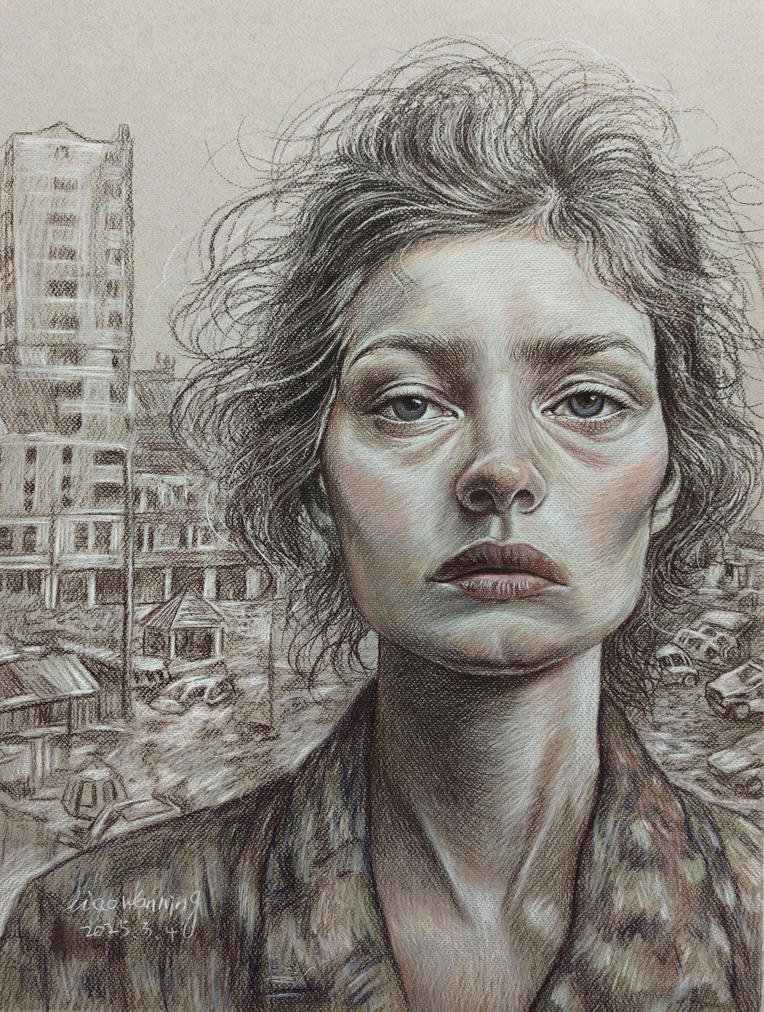 Wanning Liao explores the trauma of war and the weight of history through stark, minimalist sketches. With roots in classical training and deep affiliations across global art institutions, her work now focuses on the Russia-Ukraine conflict—distilling collective suffering into visual fragments of memory. Using muted palettes and stripped-down compositions, Liao evokes emotional ambiguity and existential solitude. Her approach recalls Goya’s rawness: form as truth, black as sorrow. These quiet yet searing works resonate with psychological intensity and unflinching honesty.