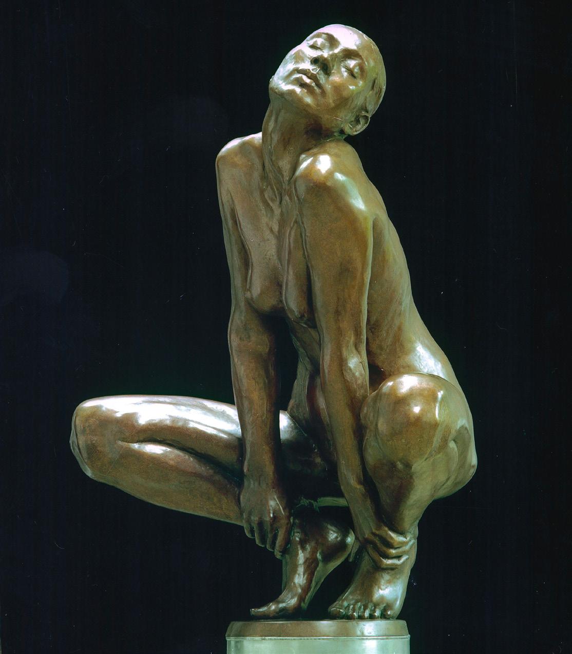 Eddy Roos is a Dutch sculptor and choreographer whose bronze figures capture the elegance and dynamism of the human form. Influenced by classical sculpture and modern dance, his work reflects a deep sensitivity to movement, balance, and emotion. Trained at the Rijksakademie in Amsterdam and later under Giacomo Manzù in Italy, Roos developed a unique visual language that merges stillness with motion. His renowned sculpture garden at Verhildersum Manor exemplifies his vision—where art, body, and landscape interact in a timeless choreography of space and form.