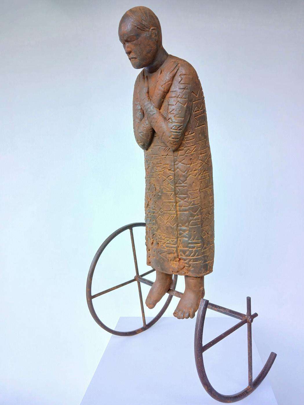 Australian sculptor, Jan Williams uses the human figure as a vessel for metaphor. In works like “Losing Bits and Pieces,” he speaks of aging through sculptural symbolism: a cloak of fading memory, sun chariot wheels, and a figure holding tightly to itself. With quiet dignity and layered references, his sculpture reflects life’s transitions—each fragment a testament to endurance, loss, and the stories we carry.