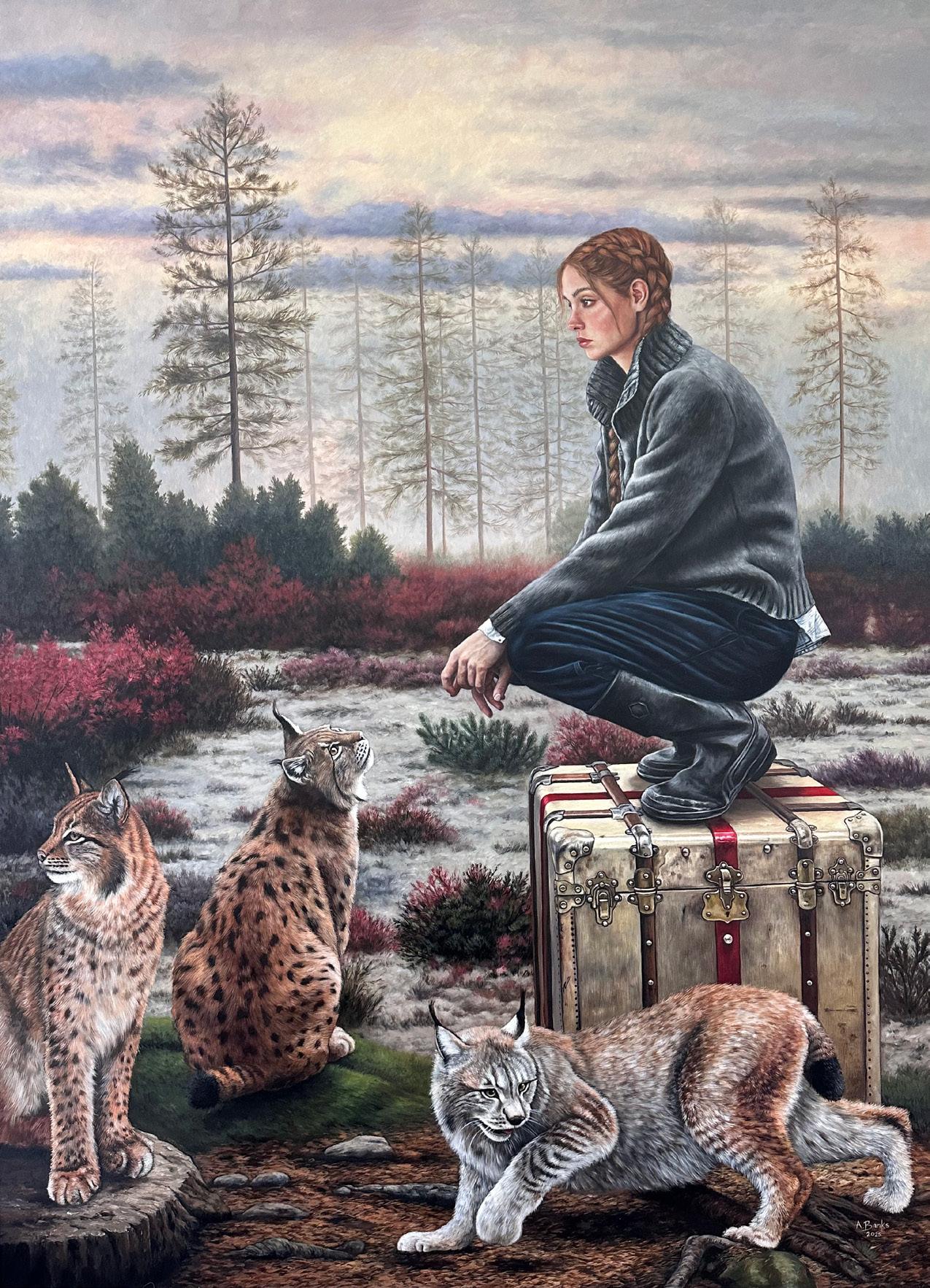 Amirata Winter’s paintings fuse classical technique with psychological depth, conjuring atmospheric scenes that hover between dream and memory. Working primarily in oil, the Swiss-based artist creates symbol-laden compositions where figures and spaces are rendered with cinematic precision and emotional resonance. His subjects often inhabit intimate, suspended moments, inviting the viewer to enter a contemplative world shaped by mystery and beauty. With a refined sense of light and detail, Winter’s work transcends realism, offering poetic reflections on identity, vulnerability, and the unconscious.
