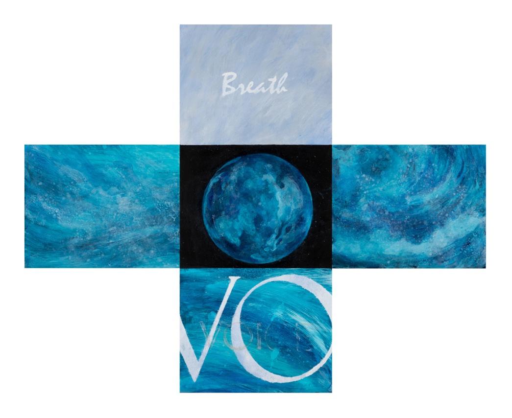 Acrylic and sumi ink on wood 5 x 5 x 5 in.