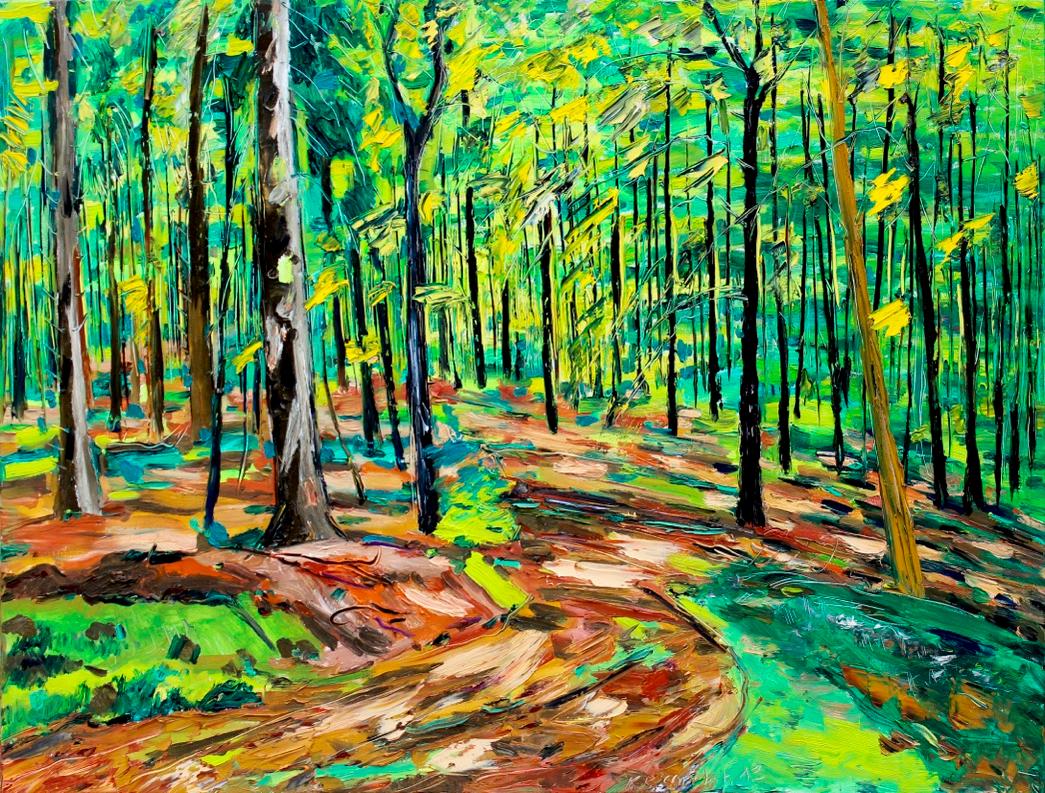 “Nature is so beautiful I cannot paint it. Therefore I paint the feeling I have for nature and use the forms and colours from my dreams. Art is music with rhythm and emotion for the eyes. Intertwining melodies in sparkling colours dance across my canvases to take you in a dream you never want to end.”