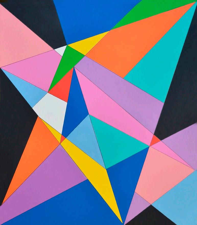 “My ongoing interest in the juxtaposition of lines, shapes, bits and pieces had led me to abstract painting. I play with organized geometric forms to design compositions by adhering to concepts like ordered complexity, where things build up from a simple base structure, and self-organize as they go, I also leave room for spontaneity and chance.”