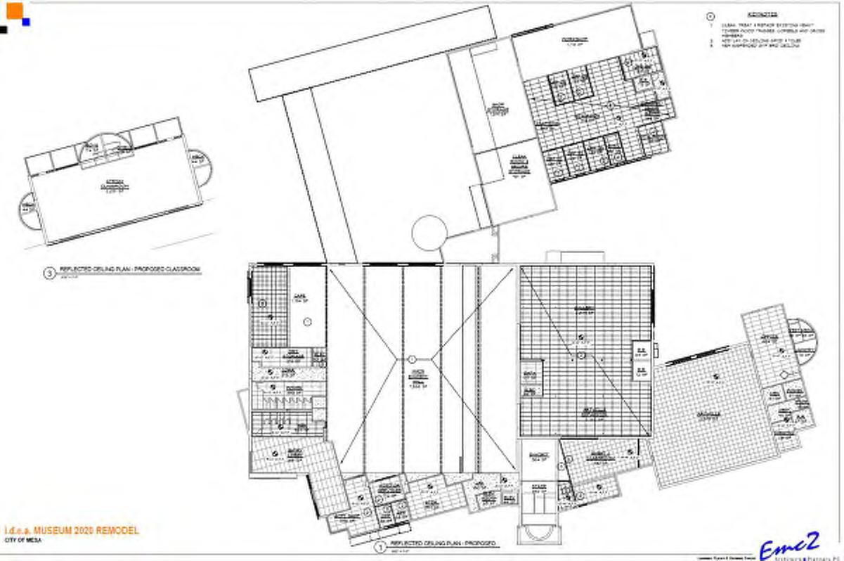 Operated by the City of Mesa, the museum attracts over 90,000 annual visitors, providing art exhibitions and STEAM activities focused on supporting early learning, nurturing creative thinking, and engaging families. The i.d.e.a. Museum Renovation Project re-purposes existing spaces within the current museum building [a former Bashas grocery store] to create new galleries, interactive public spaces, offices, and a new entrance zone in keeping with overall strategies and recommendations from the 2018 . The recommendations for architectural renovations are based 2018 i.d.e.a. Museum Artooze Site Master Plan by Gyroscope Inc. and informed by the 2019 Feasibility Report by EMC2 as well as the City of Mesa’s Scope Diagram and priority spaces - see right.