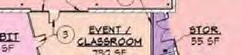 Also, the current site wall geometries by east trash enclosure cause inefficient usable space By relocating the enclosure and/or simplifying layout with (1) trash, IDEA staff will have a more efficient layout for future exhibits and events. HSS to look at redesigning trash enclosure layout for final deliverables.
