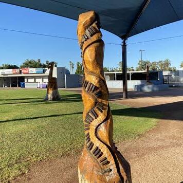 After removing several decaying 100-year-old trees at the Mesa Amphitheatre, the City erected a 50’x60’ shade structure equipped with LED lights and a misting system to provide much needed shade during the summer concert season and gave new life to the old pines by sculpting three of the trees into music-themed wood sculptures. Wood carver, John Drews, from Aniwa, Wisconsin, and regular exhibitor at the annual Desert Woodcarving show at the Convention Center, was commissioned to create these beautiful works of art.