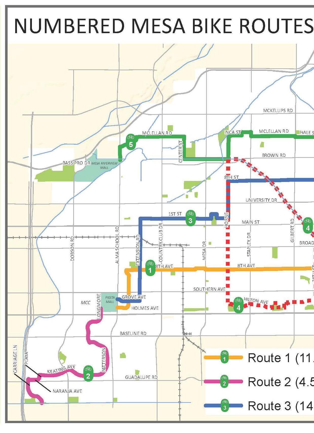 For the most up-to-date citywide bikeway, path and trail information, visit: mesaaz.gov/maps