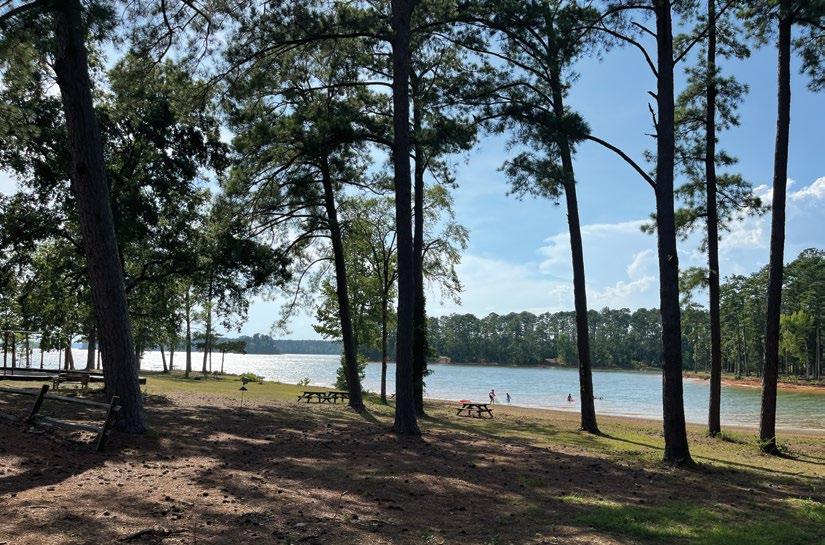 to generate hydropower through the Russell Power Plant, provide flood control, supply drinking water for Abbeville and Elberton (GA) counties, and promote fishing and recreational activities. Calhoun Falls State Park provides lake access for boating, fishing, and swimming, all of which encourage people to visit this important body of water. Additionally, Calhoun Falls offers many campsites with lake views, easy nature trails, and equestrian trails at nearby McCalla State Natural Area (sctrails.net/trails/trail/mccalla-statenatural-area). If you want to understand more about the reservoirs