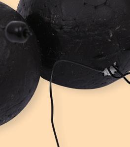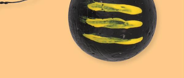 7. Cut a 15cm length of black wire. Thread a bead onto each end, twisting the wire around itself to secure each bead. Fold the wire in half and twist the folded end. Push this into the top of a decofoam ball on one end, towards the front. These are the Ant’s antennae.