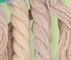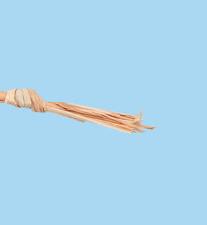 4. Gather 4-5 strands of your choice of coloured ra a. We have chosen to use the natural ra a as the core. Tie a knot in one end to secure them together.