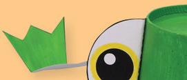 7. Use a marker to draw a mouth on your frog. Mountain fold the dotted line on the tongue template piece. Glue the tab to the centre of the mouth. Allow to dry.