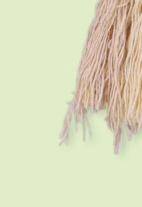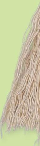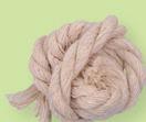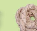 2. Thread the green yarn onto a needle and move the needle into the centre of the yarn. Tie the loose ends onto the 30cm length of macramé cord, 8cm from one end. Bring the yarn down behind the macramé cord to create a loop at the top.