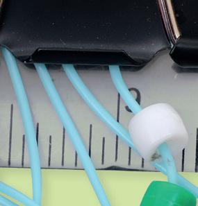 8. Pull the left and right strings to tighten the row, bringing the beads up towards the clip and securing in place. This is your first row.