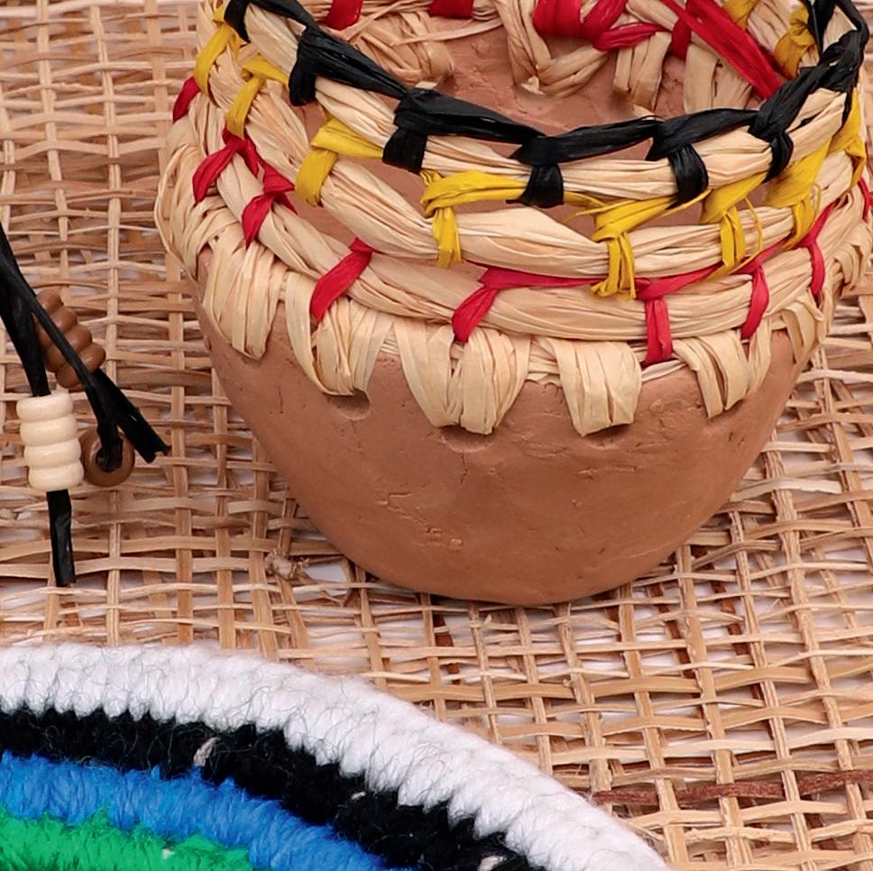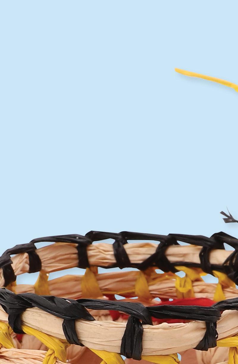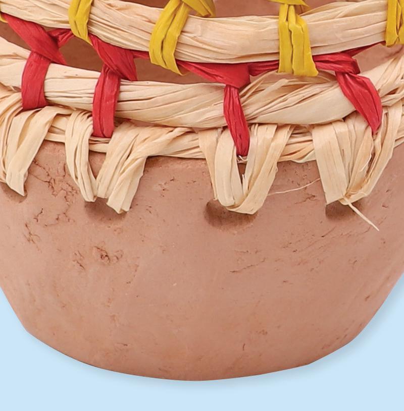 12. Trim the ra a lengths to finish the top of your pot. You may also like to glue beads to the ra a ends. Allow to dry if needed. Your Clay Weaving Pot is now ready to display or gift!