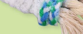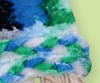 10. Cut a 60cm length of blue, green and white yarn. Align them all and tie onto a wooden skewer, then simply plait down the length. Tie a knot to secure.