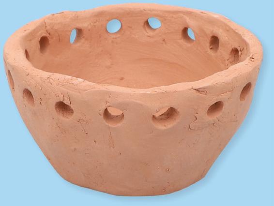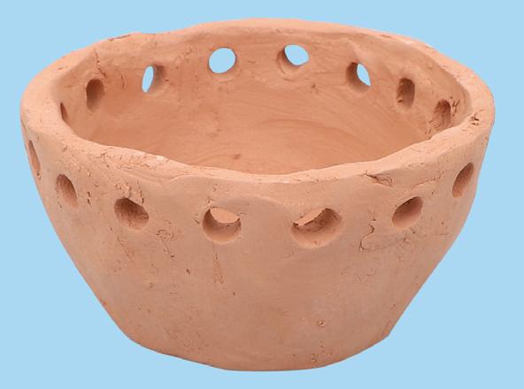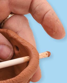 1. Roll 100g of clay into a ball. Use your thumb to push into the centre of the ball. Pinch the edges to create a pot that is approximately 6cm in diameter with 5mm thick walls.