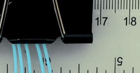 2. Lay the strings so that the top 20cm of each string hangs above a ruler. Fold the strings over and behind the ruler, clipping them in place with a fold back clip.