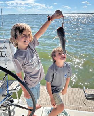 As we reset the spread anticipation grew to !nd Ben’s !rst saltwater adversary. Fortunately, another sail came in a smashed the right rigger. However, it ran right at us, and we were never able to get tight. Undaunted, we set up again. Soon all the baits were nervously darting on the surface. e le atline erupted as the sail slashed, splashed and devoured the bait. Ben was on, and this !sh leapt and twirled with all the acrobatics of a Cirque du Soleil show. ere was still another to eat and moments later we doubled up. Both !sh cooperated with plenty of arial antics and a er a good !ght we had both !sh to the boat. To say Ben was pumped to land his !rst bill!sh is an understatement. Amped up with adrenaline and ready for more he could only beam with an ear-to-ear grin and say “let’s go!”