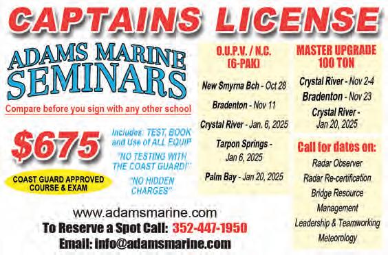 ovember is almost a completely unique month of the year. We’ll start getting the !rst real cold fronts, and this will pile the bait on temp breaks. Structure on the bottom will certainly hold the grouper and snapper on the bottom, but pay attention to the recorder and the marks in the mid water column. ese marks can be a number of the targets we’re looking for. Black!n are a given during the month of November, but it’s “go time” for wahoo and yellow!n. e bait can stand colder water than the pelagics. is is one of their biggest defensive strategies, and why you should have a (realistic) jig ready that can !sh 75-150 feet deep around the bait balls because the surface water will likely be as much as a few degrees warmer that the surface water due to the cold wind blowing overhead. Keep live baits out on circle hooks and ourocarbon and try to get some lower in the water column. ese live baits are black!n bombs ready to go o , but I am always drawn to the bottom in search for the grouper and snapper. Some of these same live baits or frozen cigs and sardines on the correct jigs (hint, hint) are irresistible to the !sh I’m really looking for. I want the big grouper and snapper bite. When you !sh the correct baits using the correct presentation, you’re not asking them to eat it, you’re MAKING them eat it! BAM! is is also African pompano candy. e jig in the mid to lower part of the water column is deadly, but if there’s no bites !shing it deeper and deeper all the way to the bottom, bring it up to the surface and repeat the process.