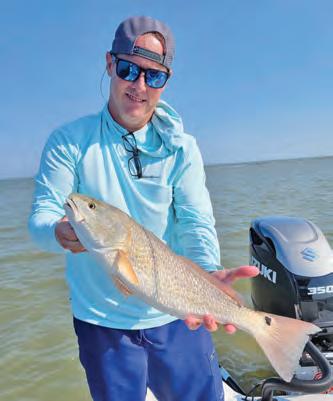 ed!sh are one of the most sought a er game !sh by inshore !shermen from Texas to the Carolinas. ey are great !ghters; they are great tasting; and they are perfect for sight !shing because they love super shallow water. Red!sh are part of the drum family and have four nostrils. is tells us that scent is their chosen sense while searching for food in dark and murky water.