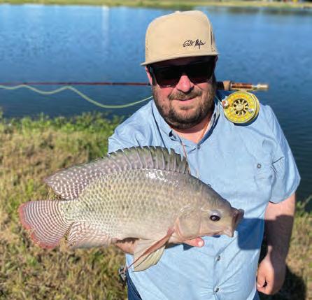 Outgoing tides are my favorite. ey concentrate bait and predators alike into smaller, target-rich areas. Look for drains, bayou mouths, bends, and reef cuts. Even island points can funnel current and stack sh. Once you’ve found the spots, presentation is everything. Reds o en respond to a steady retrieve, trout like a twitch-twitch pause, and ounder react best to a lure darting along the bottom, stirring up a little commotion. Of course, no sh reads the manual — sometimes the “wrong” retrieve produces the right bite. Which brings me to one of the best lessons I’ve learned: sometimes you’ve got to break your own rules. On a recent quarter-moon tide, I worked a shallow grass at with two rods rigged identically except for lure color. One was white with a limetreuse tail, the other pumpkinseed with green glitter. Early on, the reds were all over the pumpkinseed, inhaling it on a fast, steady retrieve just under the surface. But when I noticed trout feeding nearby, I switched things up. Instead of swimming the bait, I bounced it hard o the bottom, fast twitches with short pauses. Suddenly, the trout lit up, and they showed a clear preference for the white limetreuse. at day drove home an important point: don’t get stuck on what’s working. Change the speed, change the color, change the action — sometimes even when the bite is good, it can get better. Covering the same water with di erent retrieves or presentations lets you unlock what di erent species want, even when they’re feeding in the same spot.
