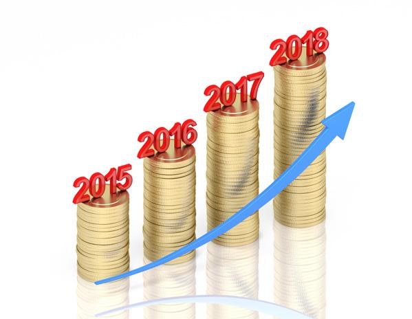 The bar graph shows a steady percentage increase in workers’ salaries.