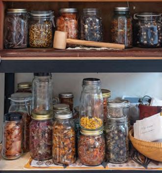 Textile artist Janette Knowles’ studio is a space that’s part international café and part ancient apothecary. Sunlight shining in through windows highlights the jars of dried flowers she uses to create natural dyes for her art. Couches and chairs form what Knowles describes as a “funky little impromptu community center.” She hosts friends and reading clubs in the space.