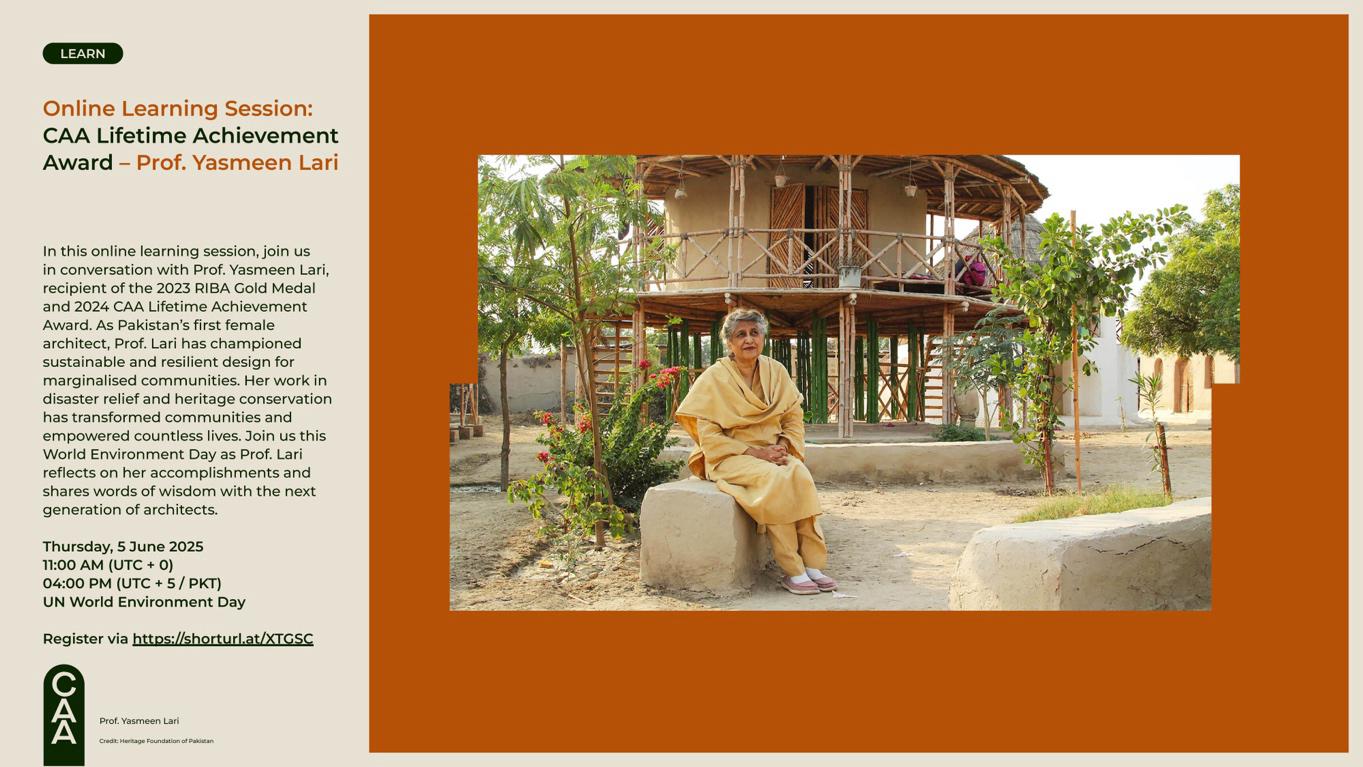 � As the Commonwealth Association of Architects (CAA) celebrates its 60th anniversary, we are thrilled to announce that Professor Yasmeen Lari will deliver a landmark lecture on World Environment Day, 5 June 2025.
