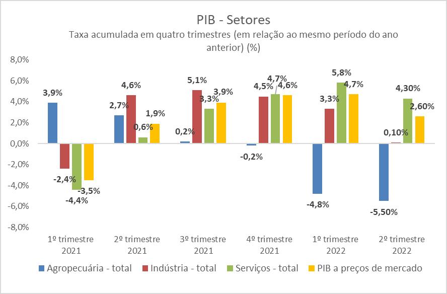 Para a Selic, o Banco Central, na última reu nião do Copom (Comitê de Política Monetá ria), em 03/08/2022, aumentou a taxa para 13,75% a.a. e mostrando-se mais data-dependent, isto é, mais dependente da evo lução dos dados, que, mais recentemente, apontam na direção da manutenção da Selic nesse patamar por algum tempo. Nesse sen tido, a projeção para a Selic ao final de 2022 ficou em 13,75% a.a.
