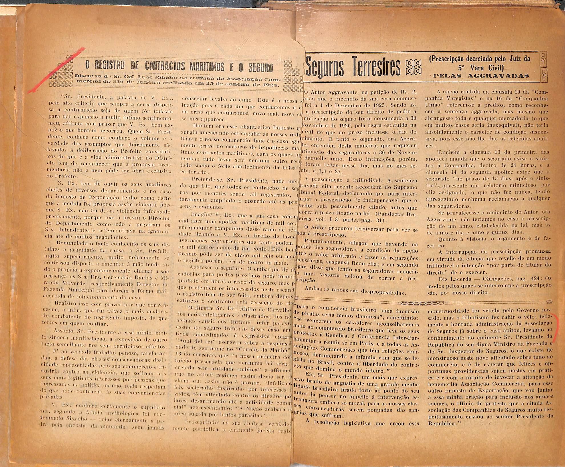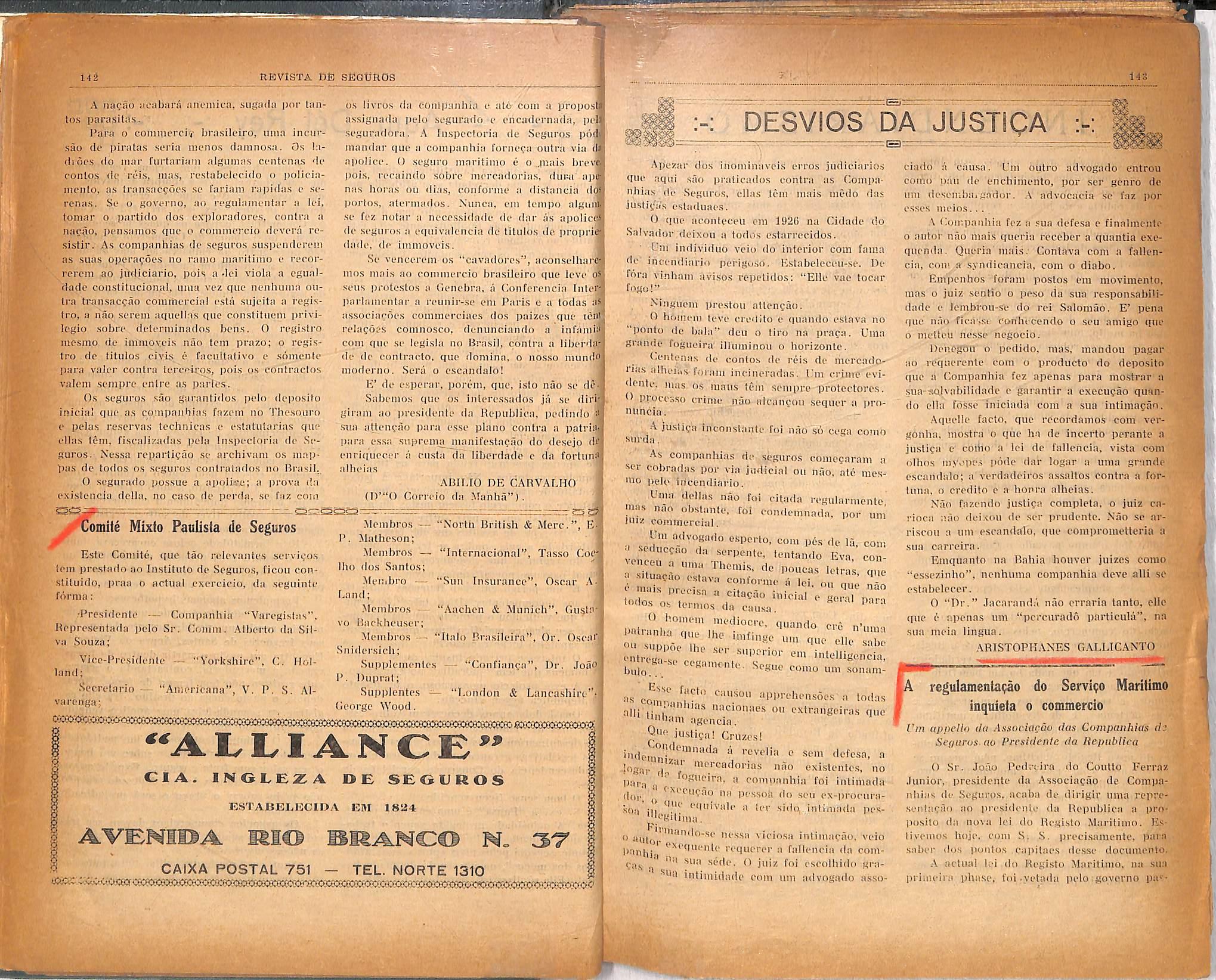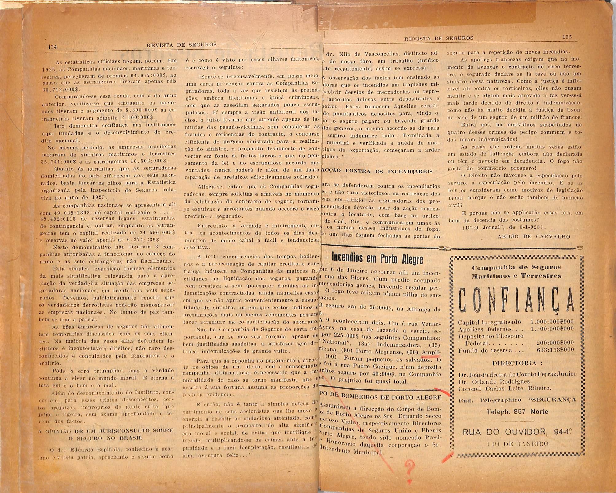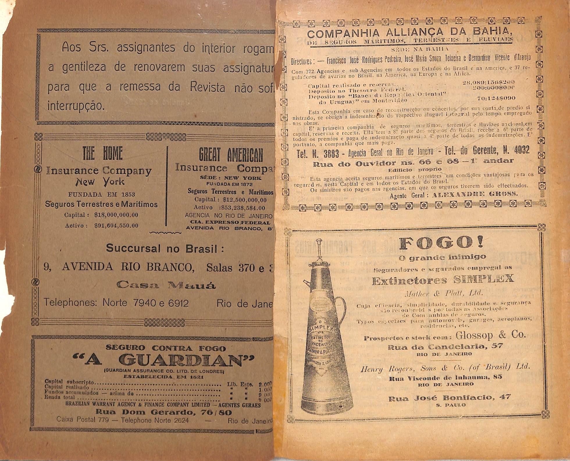 Opera em Seguros Terreslres em prcdios, estabelecinienlos comnierciaes, moveis, inercadorias em transilo e outros riscos lerresIres. Em Seguros Aiarilimoa sobre vapores, navies a vela e uutras embarcmjSes, mcrcadorias embavcadas, etc. Aceita prociiragao para adininislrar bens de qualqiier naliireza, recebimenlo de alugueis de predios, juros de apoiices e outros tilulos de renda, mediante mbdica commissao-