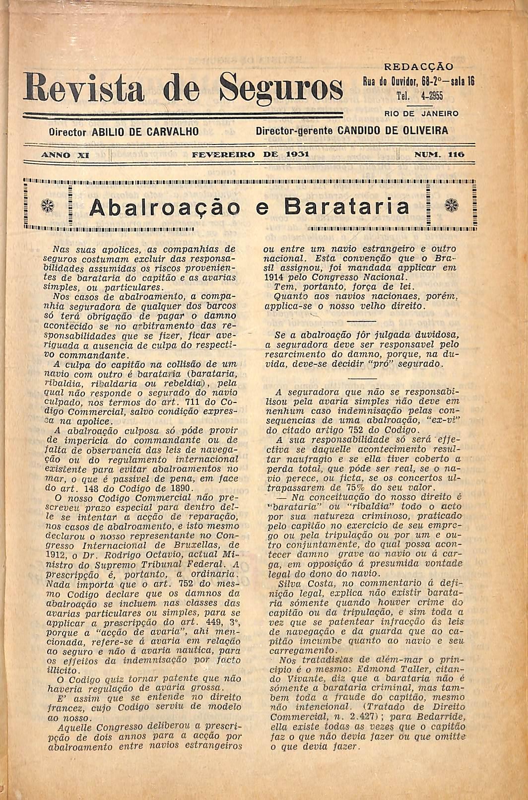 Rio de Janeiro, 25 de Fevereiro de 1931. (a.) Clovis Bevilagua.