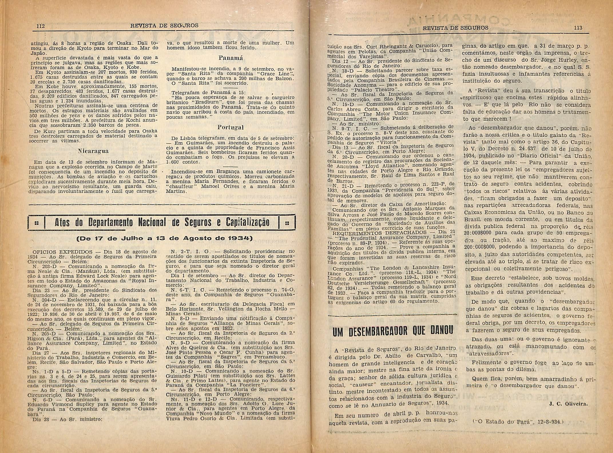 ginas, do artigo em que, a 31 de margo p. p. comentamos, neste orgao da imprensa, o trecho de urri discuiso do Sr. Jorge Hurley, entao nomeado desembargador, e no qual S. S. fazia insultuosas e Infamantes referencias a Instituicao do seguro.