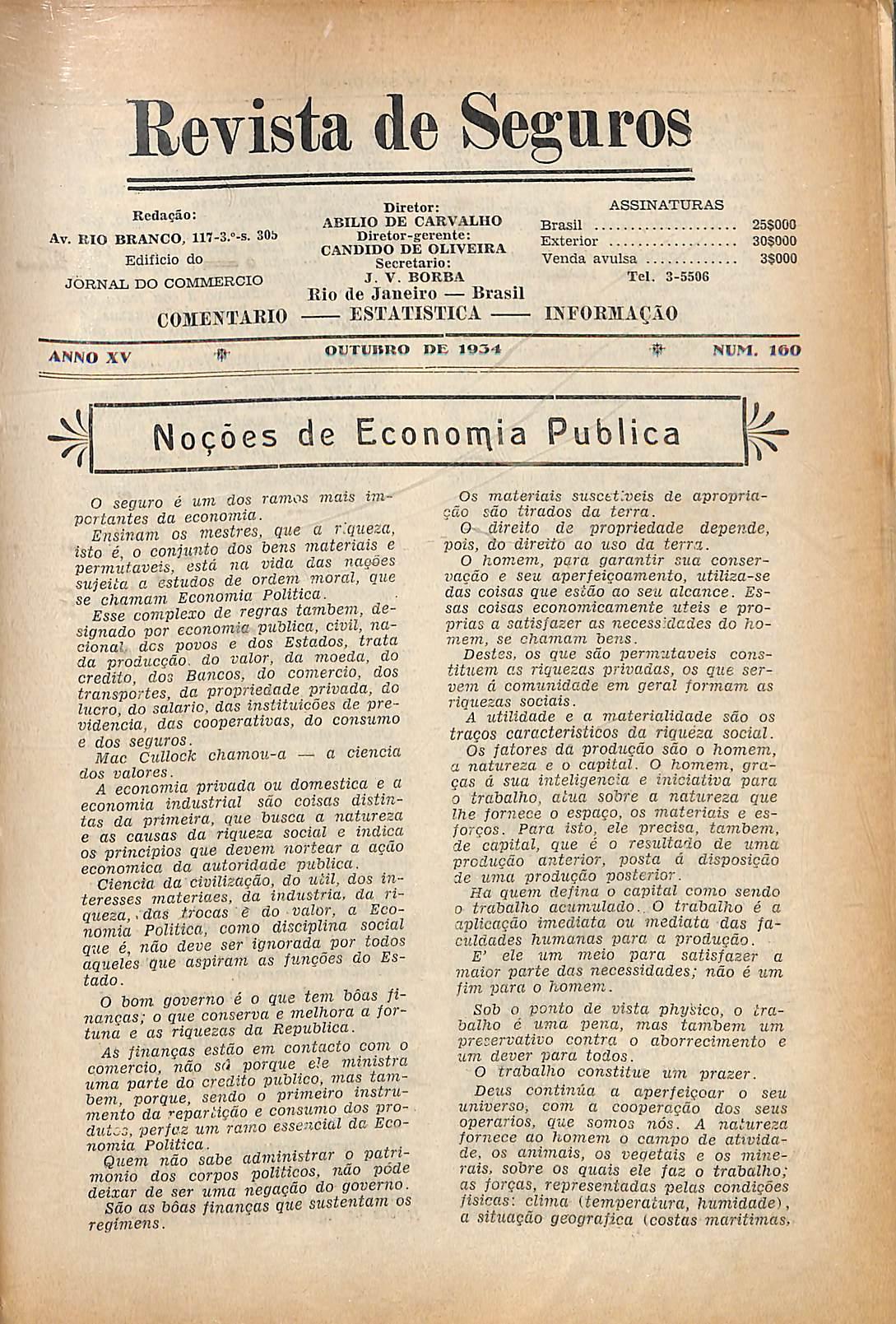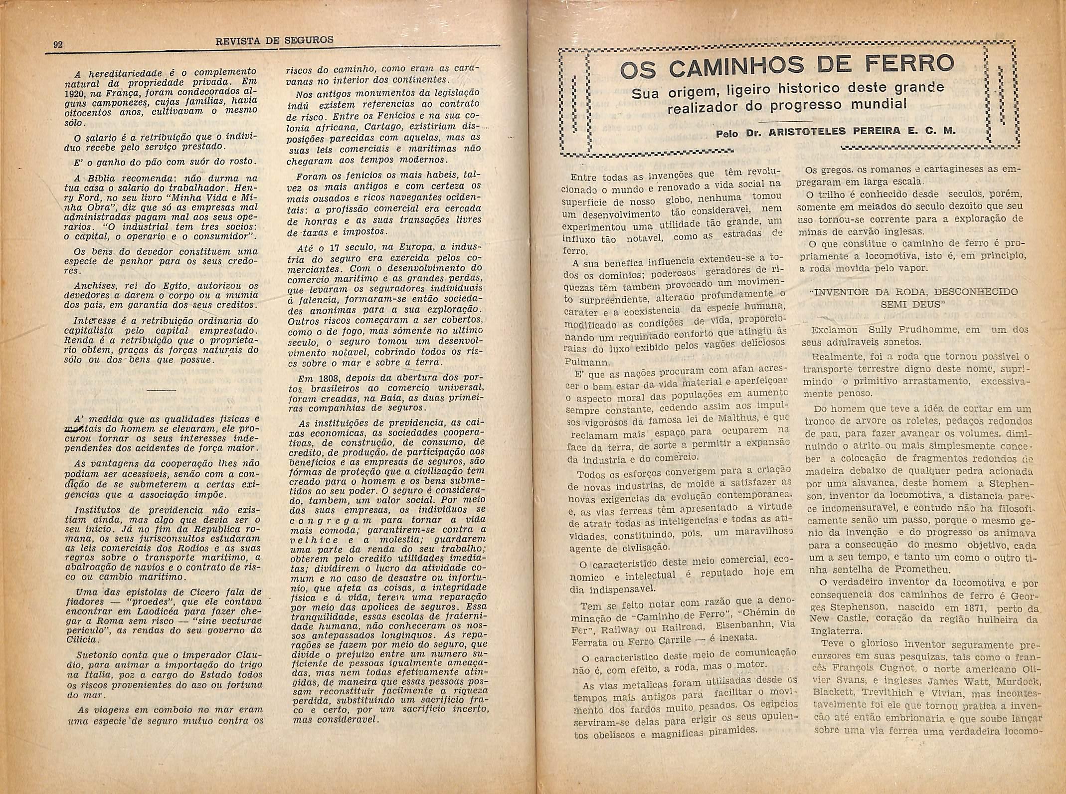 A "Revista de Seguros", do Rio de Janeiro e dirigida pelo Dr. Abilio de Carvalho. "um homem de grande Inteligencia e de coragao ainda maior; mestre na fina arts da Ironia( da graga; senhor de solida cultura juridica e social, -causeur" encantador. Jorviallsta distlnto. mestre Incontestario em todos os assuntos relacionados com a Industria do Seguro", como se le no Annuarlo de Seguros". 1934.