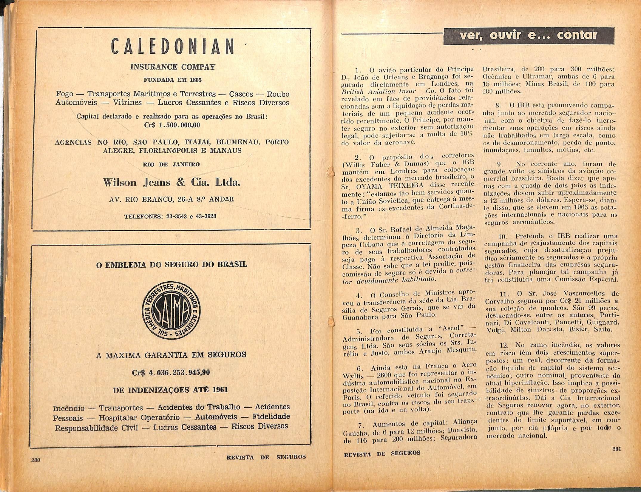 Recife - Belo Horizonte e Pôrto Alegre Incêndio, Transportes, Acidente� Pessoais, Responsabilidade Civil. Autos, Lucros Cessantes, Perdas e Danos. Riscos Piversos