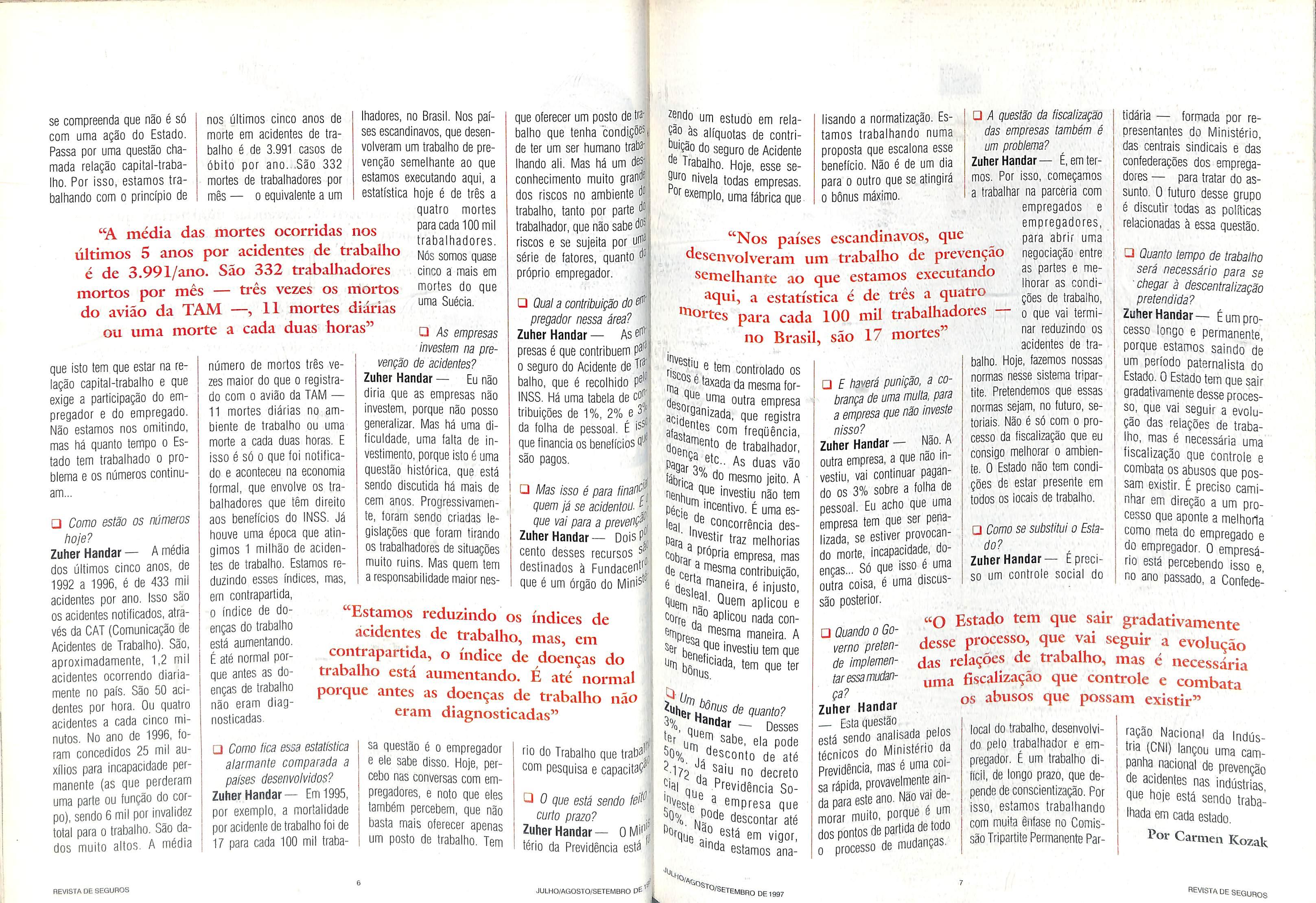 rar as condições de trabalho da população. "O Estado não tem condições de estar_ pre sente em todos os locais de trabalho", diz. Leia. a seguir. 03 principais trechos da en trevista que Zuher Mandar concedeu à Revisla de Segu