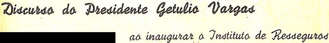 Deixando o recanto ttanquilo de Petropolis onde, nos meses de estio, V. Ex. se aproveita da serenidade do ambiente e da amenidade do clima pata melhor apUcar o sen devotamento d obra impetec'tvel que esta realizando emfavor de nossa pdtriq, e'vindo a esta casa honrar com a autoridade de sua presen^a a cerimonia do inicio das operaqoes do Instituto de Resseguros do Brasil, presta piiblico testemunho do interesse que Ihe merece este orgao, hd anos idealizado par V. Ex. e agora transformado em irrecusdvel realidade.